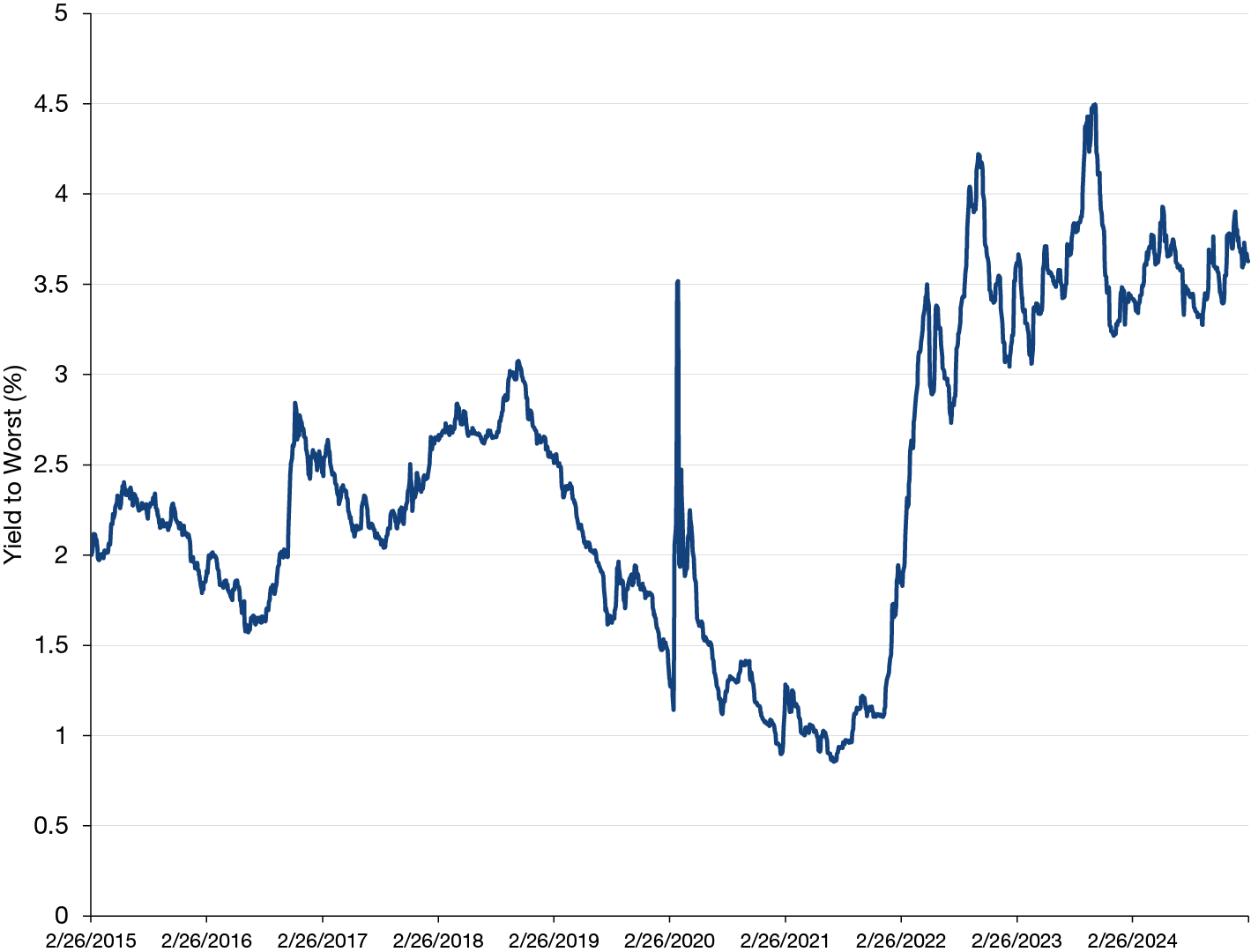 Yield-to-worst on Bloomberg Municipal Bond Index, February 26, 2015–February 25, 2025
