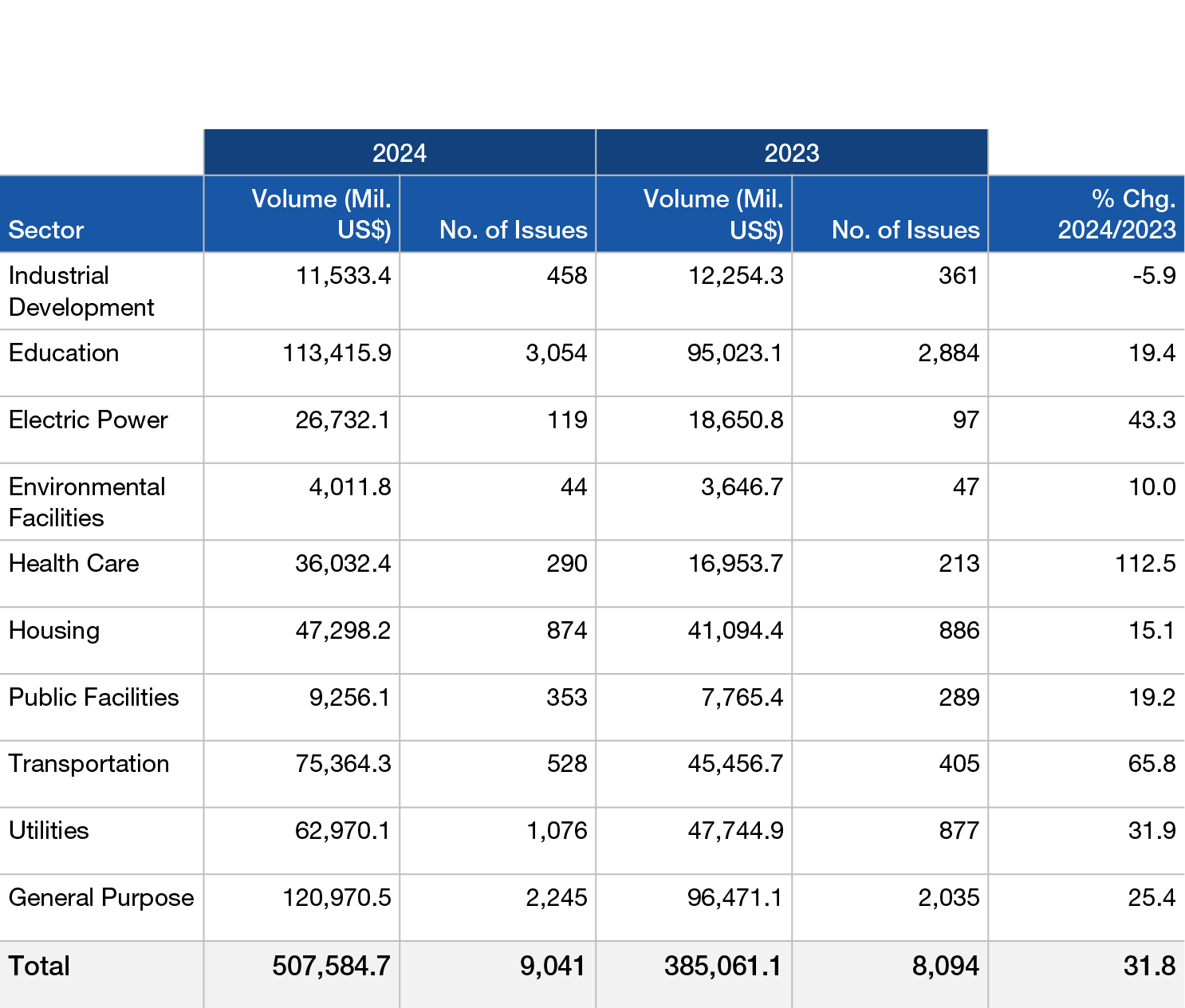 Figure 2. Municipal Bond Issuance Climbed Across a Broad Array of Sectors in 2024
