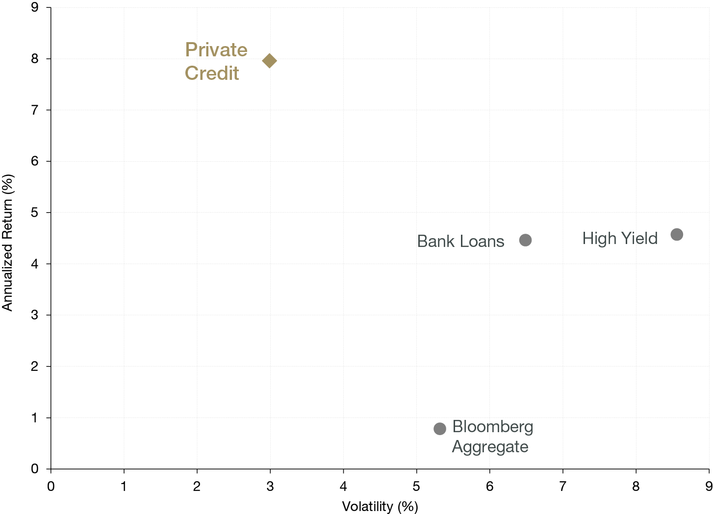 - While private credit has characteristics of an alternative asset class, it shares many similarities with traditional credit strategies. Recent convergence among issuers and investors suggests that direct lending may eventually be viewed as a more mainstream credit option rather than an alternative asset class.