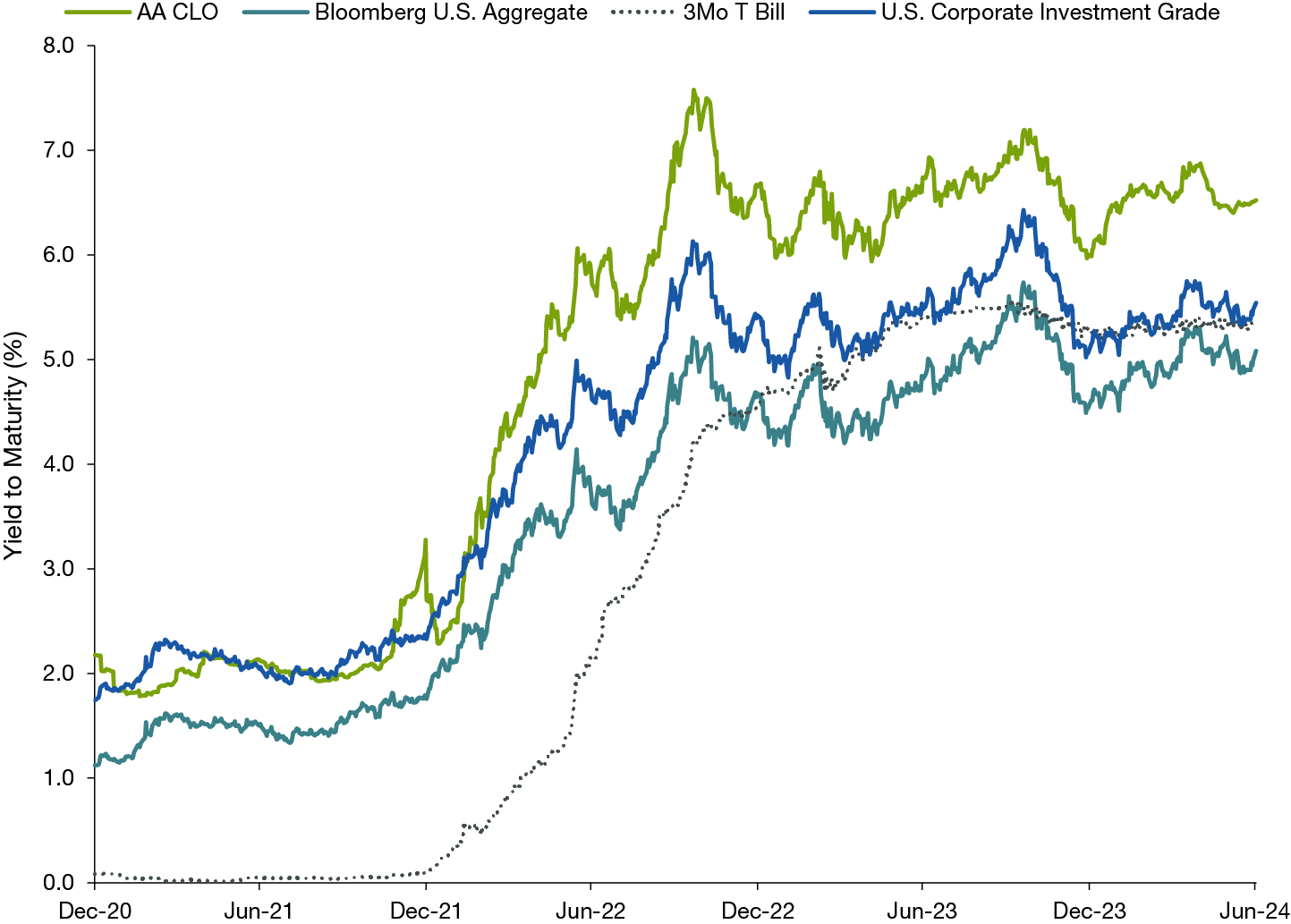 We strongly advocate for diversifying fixed income exposure in investment portfolios, including CLOs along with other asset classes, to balance risk and earn the additional carry available in corporate bonds, loans, and securitized products. We think CLOs are particularly effective for balancing fixed income portfolios because both the credit orientation and the floating rate feature help diversify the rate exposure that is often the most dominant risk in most fixed income portfolios.