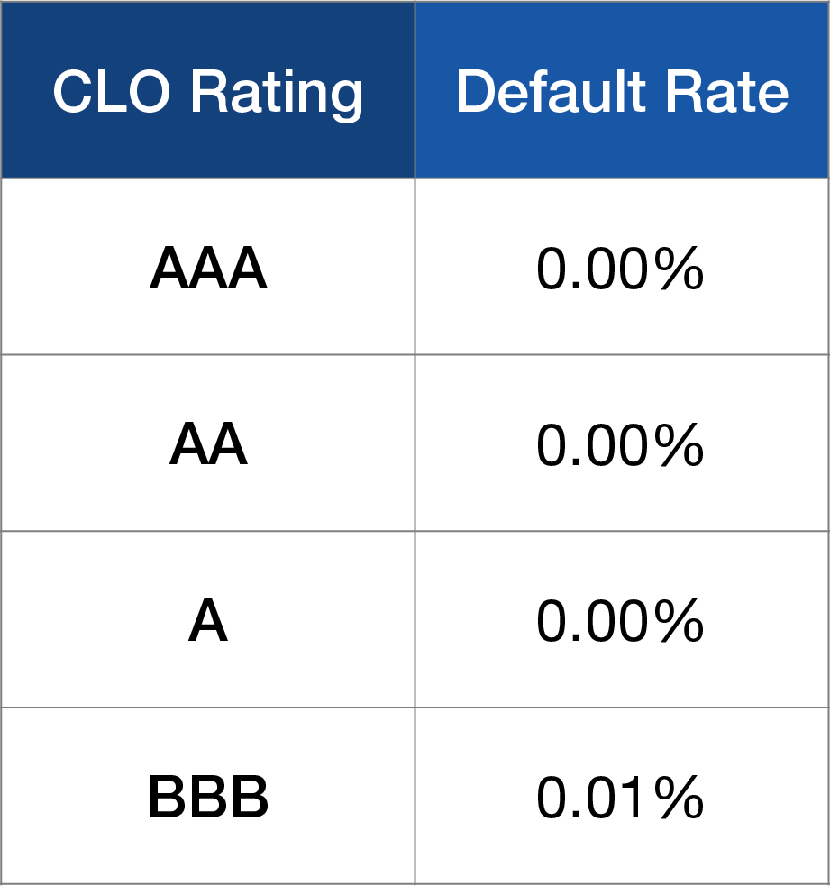 The investors in CLO debt receive high quality, diversified, floating rate loan exposure; CLO debt typically offers better spreads than corporate bonds of the same rating, and historically fewer defaults, based on data from S&P Global.