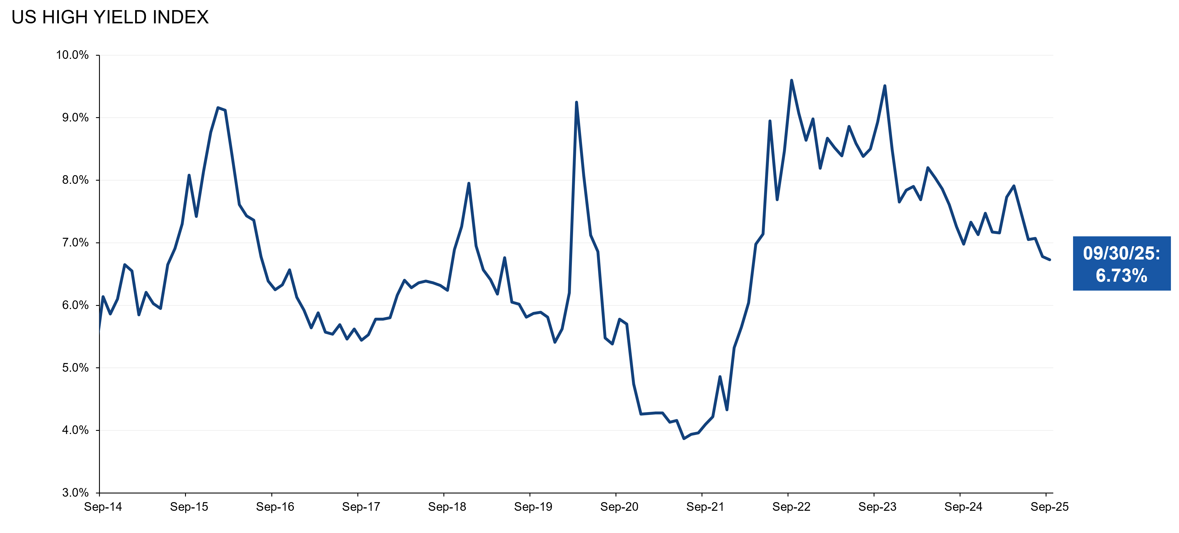 Data as of 09/30/25. Source: ICE Data Indices, LLC. Yields represented by the U.S. High Yield Constrained Index. * Return data calculated from index inception in December 1997. Past performance is not a reliable indicator or guarantee of future results. It is important to note that the high-yield market may not perform in a similar manner under similar conditions in the future. The historical data shown in the chart above are for illustrative purposes only and do not represent any specific portfolio managed by Lord Abbett or any particular investment. Indexes are unmanaged, do not reflect the deduction of fees or expenses, and are not available for direct investment.